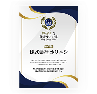 2年連続で「堺・泉州を代表する企業100選」に選出されました。