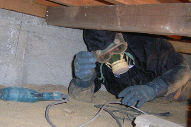 お客様との日程を調整した上で直接お伺いし、シロアリの種類と被害の状況はどこまでの範囲か、どれくらいの大きさか等を実際に調査させて頂きます。 ヤマトシロアリ研究所では、お伺いする前に事前確認を必ず行います。